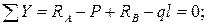 выбираем произвольно. Направим, например, обе вертикальные реакции вверх. Для вычисления их значений составим два уравнения статики: