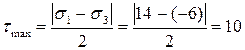 Определяем наибольшее касательное напряжение, возникающее в рассматриваемой точке тела