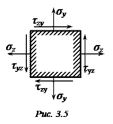 отсутствуют, то есть напряженное состояние является плоским. Вместо объемного параллелепипеда, с целью упрощения, на рис. 3.5 показан плоский элемент: его проекция на плоскость